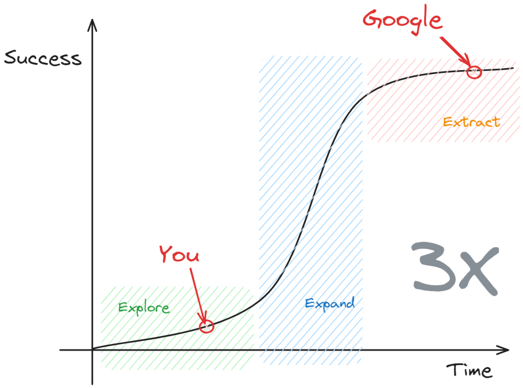 Kent Beck’s 3x model describes the different stages companies go through. And depending on the stage many things change. Goals change: scale or finding product market fit? And so do best practices!